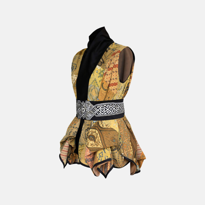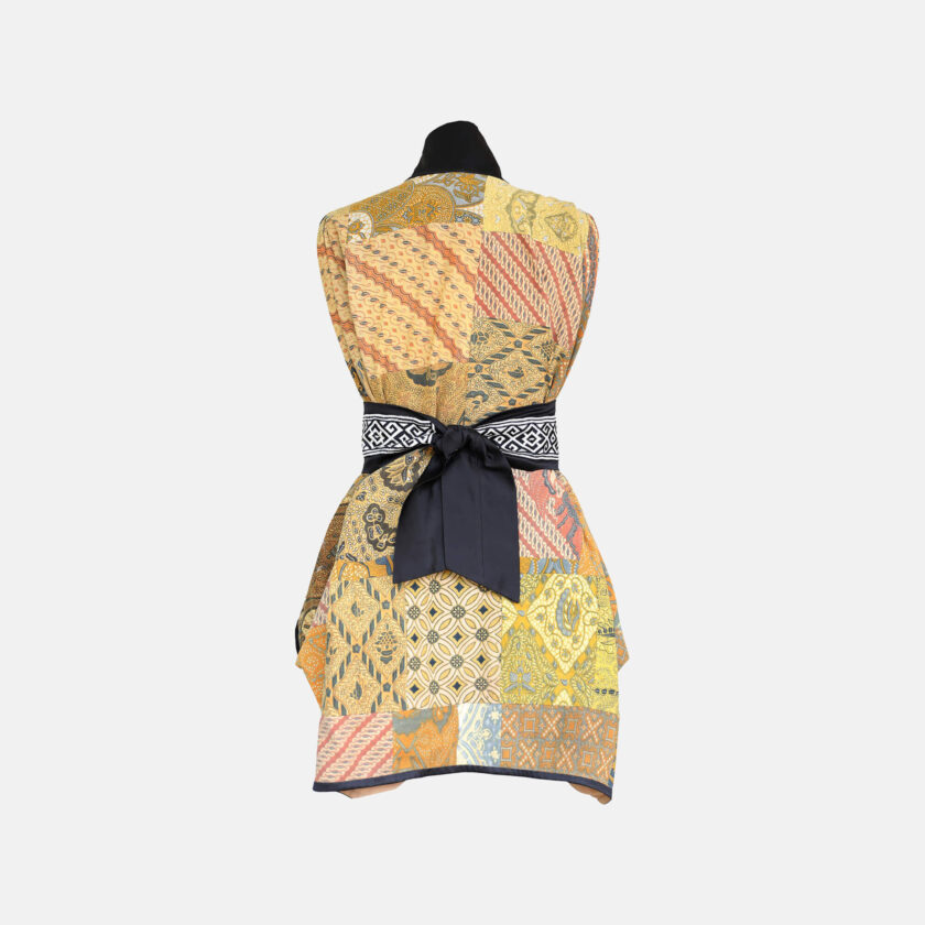 An outfit that is made using the remaining pieces of batik fabric that are not used and then sewn back so that it can create a beautiful outfit. This shirt can be used as an outer or a blouse.
